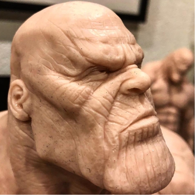 Mit Sculpting, so wie es hier auf meiner Webseite beschrieben wird und wie ich es bei meiner täglichen Arbeit anwende, hat das jedoch nicht mehr viel gemeinsam. Ich arbeite weder mit Hammer und Meißel, noch schnitze ich mit einem Messer an einem Holzblock herum. Ich arbeite vielmehr mit Tonarten wie Polymer Clay, also einem Ton aus PVC-Partikeln, Weichmachern und oftmals noch beigesetzten Farb-Pigmenten. Das ganze ergibt dann am Ende von der Konsistenz her einen Ton, der sich ähnlich einer Knete verhält, bearbeiten und formen lässt und nach dem Backen im Ofen vollends aushärtet.
